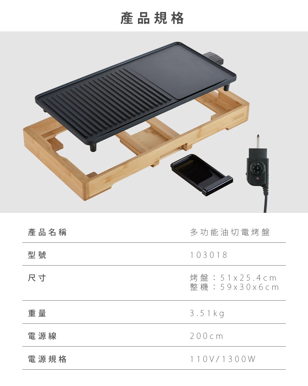 PRINCESS 多功能油切電烤盤 103018 原廠