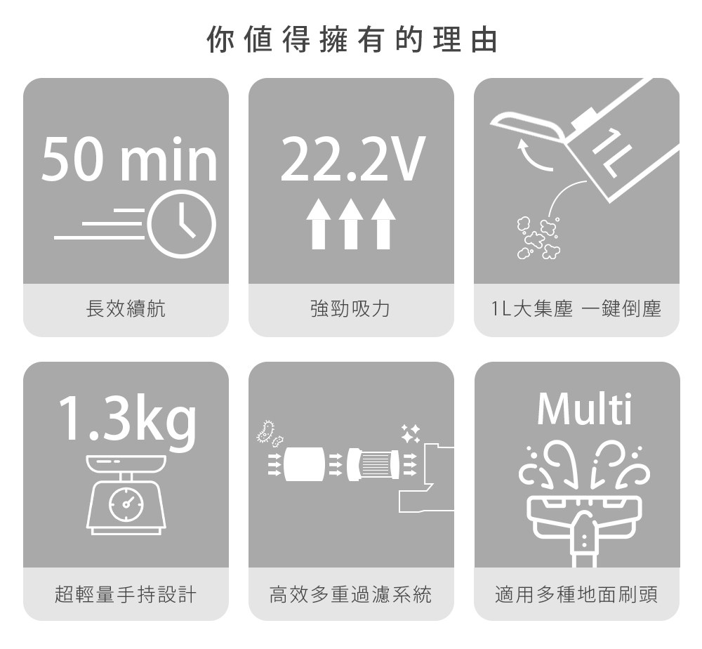 【1/18-1/25 LINE購物下單,享5%LINE POINT回饋】殺塵豹H5 四合一手持無線吸塵器(158AW 超強吸力/1.55kg 超輕量/60 分鐘強續航)
