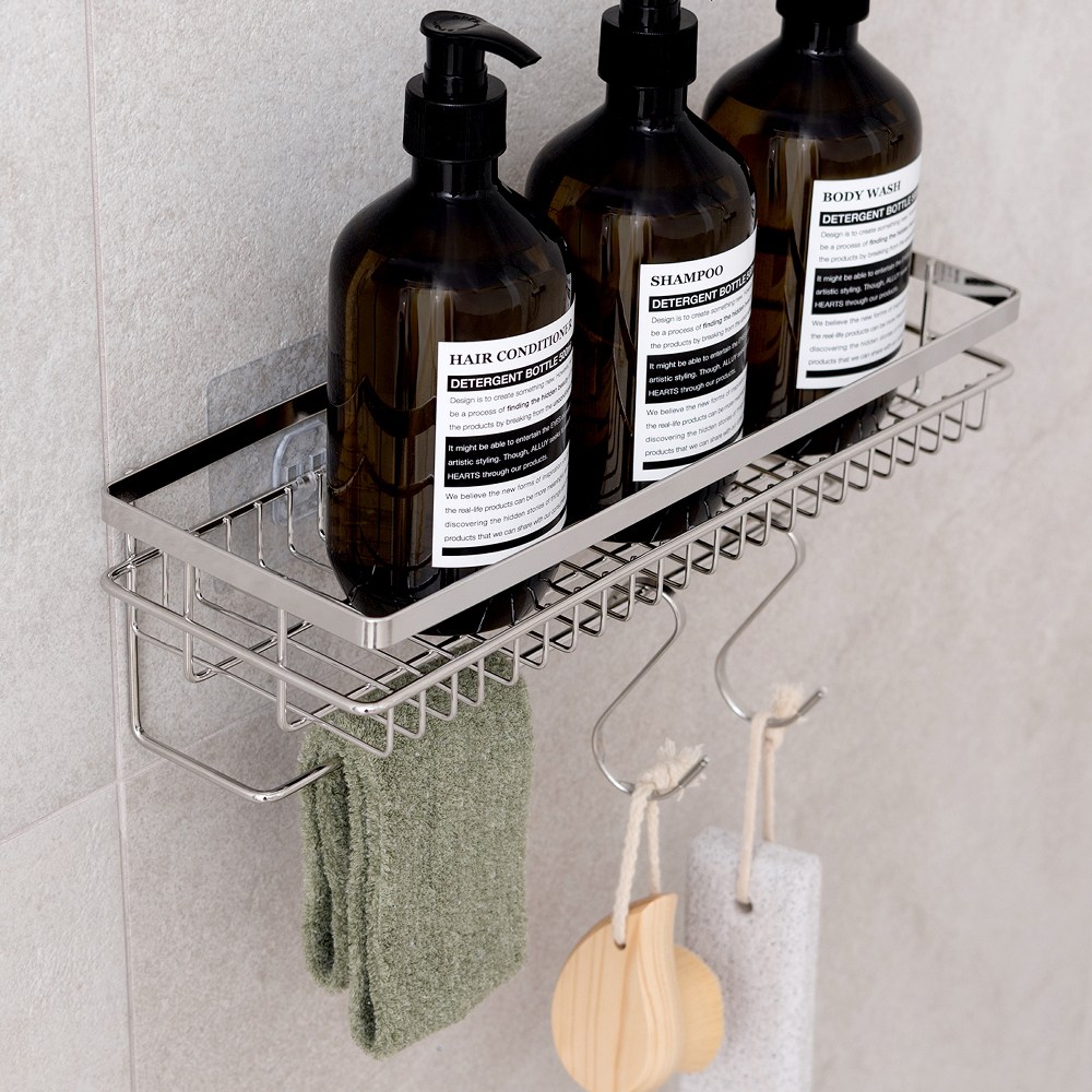 【日本霜山】304不鏽鋼浴室置物籃/收納掛籃(掛鉤可拆卸)