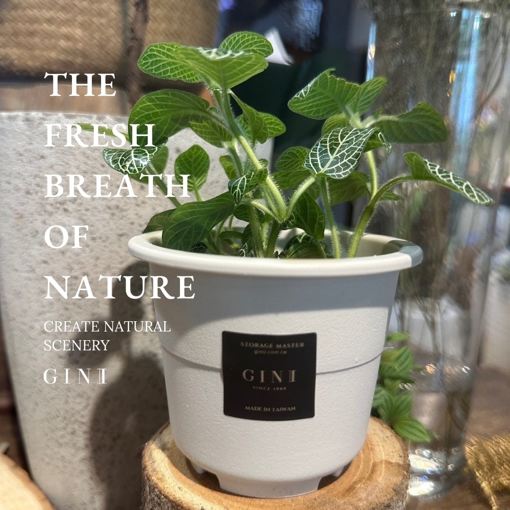 GINII北歐多功能控水石紋花盆 高M 附旋轉底盤 5.4吋 Ø13.6 象牙白