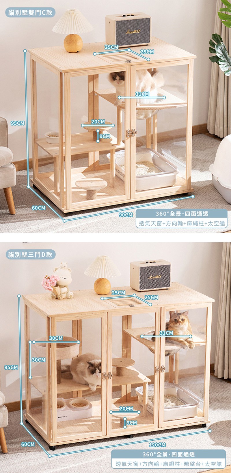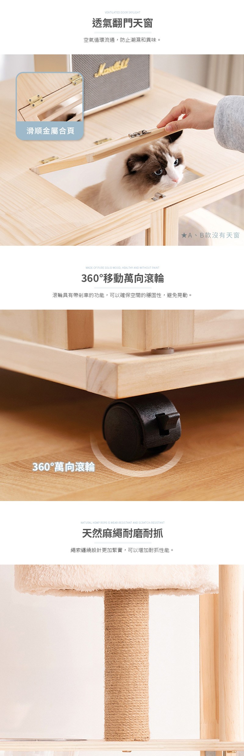 頂天立地貓爬架 劍麻繩柱 實木多層板 C款 棕色 1組