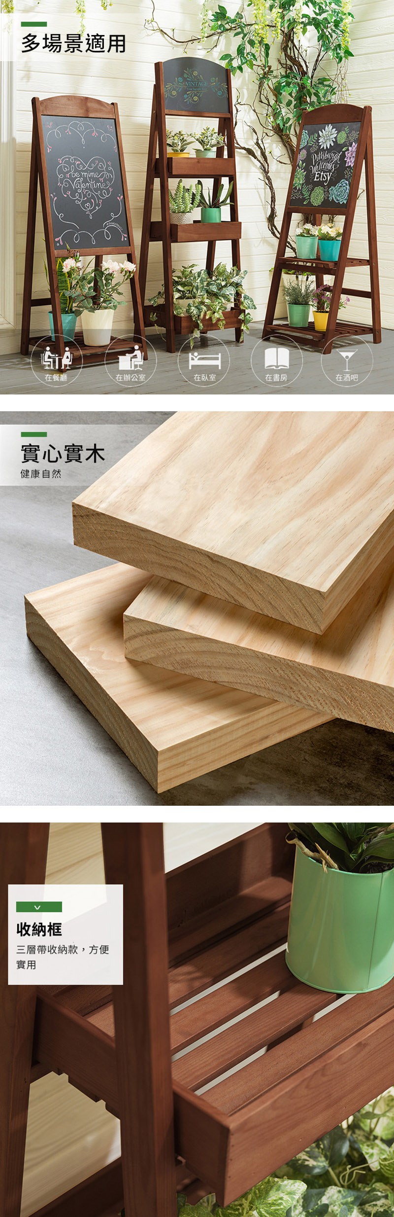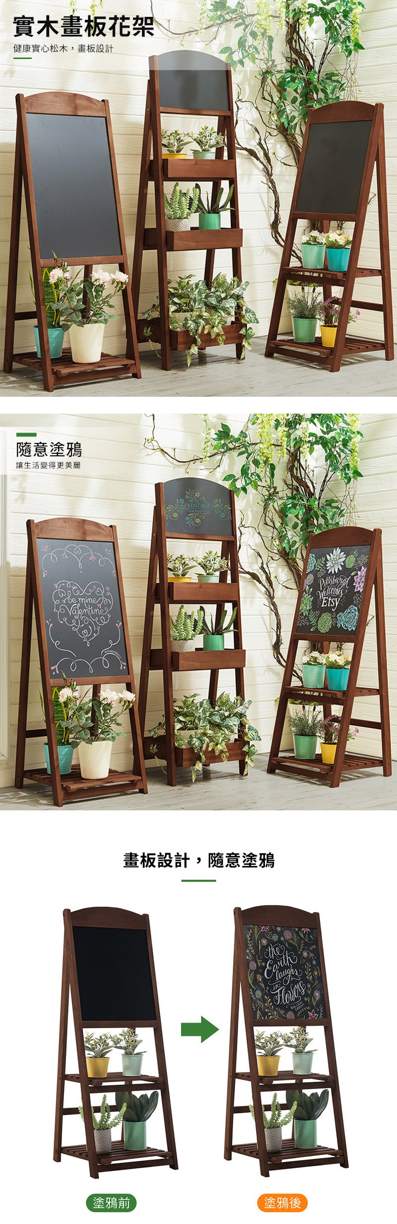 Happylife 復古色實木畫板 告示牌 單層 Y12237