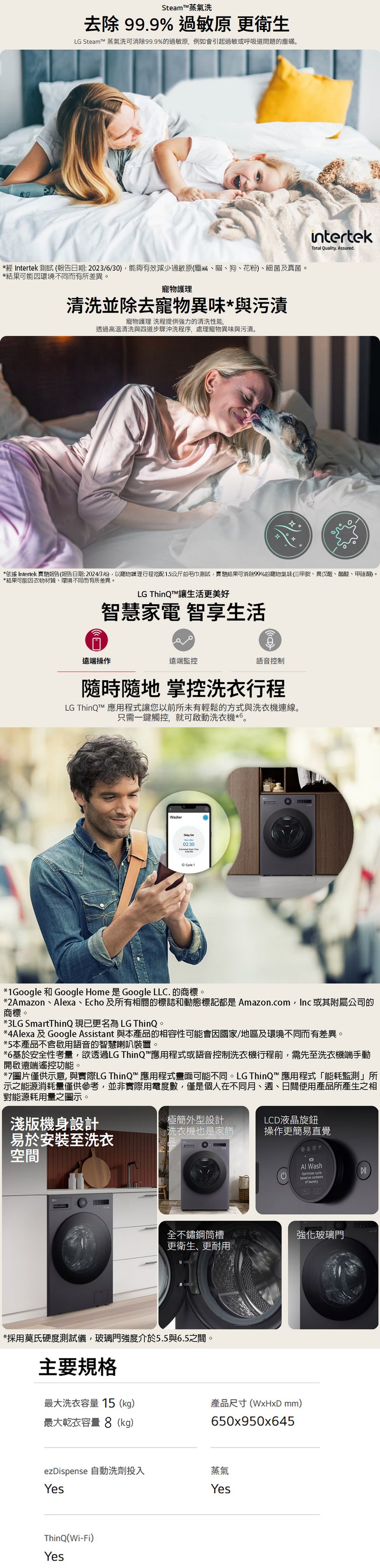 ◆Steam™蒸氣洗:60°C天然蒸氣去除99.9%過敏原