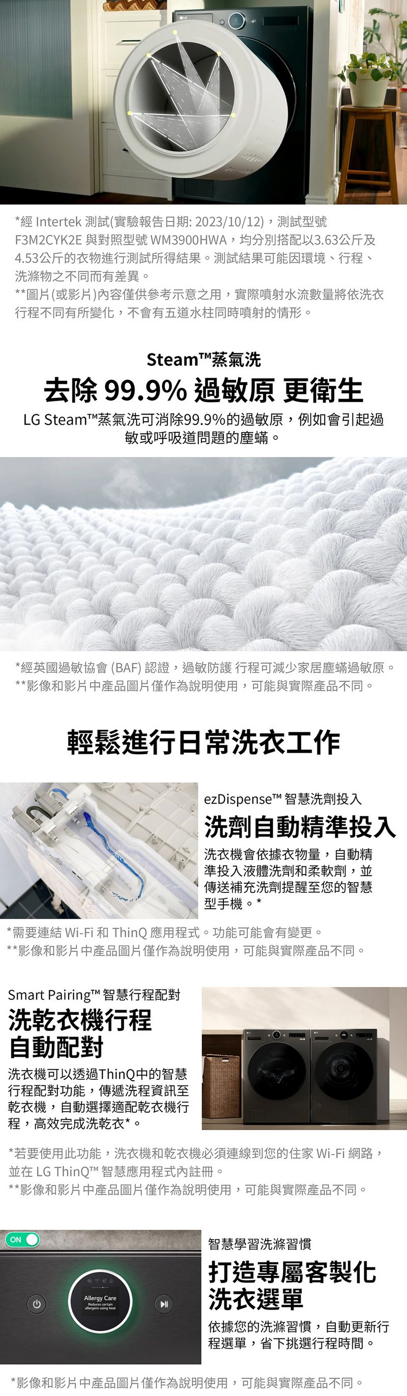 ◆Steam™蒸氣洗:60°C天然蒸氣去除99.9%過敏原