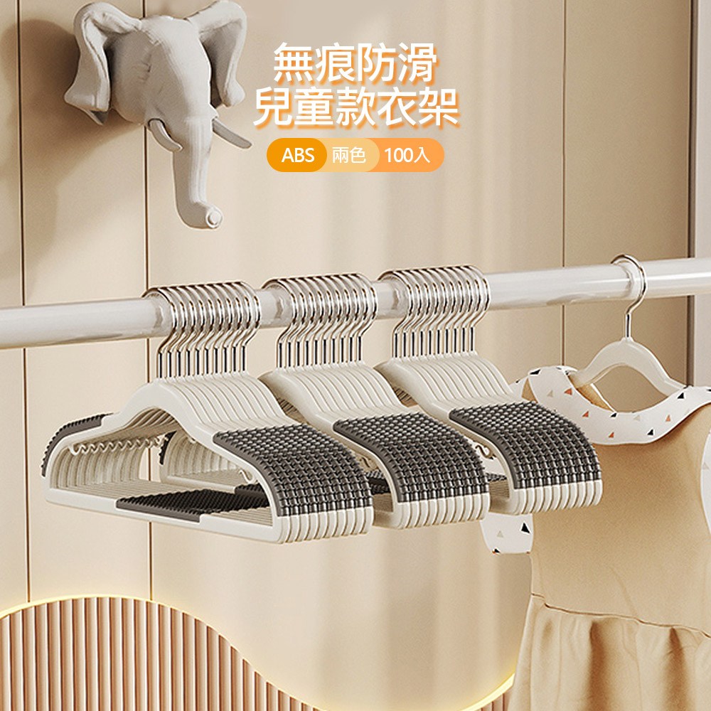 【Mr.box】100入ABS/植絨無痕防滑衣架任選均一價(兒童衣架 曬衣架 衣架 衣櫃架 吊衣架 掛衣架 內衣架) 100入兒童款衣架-灰色