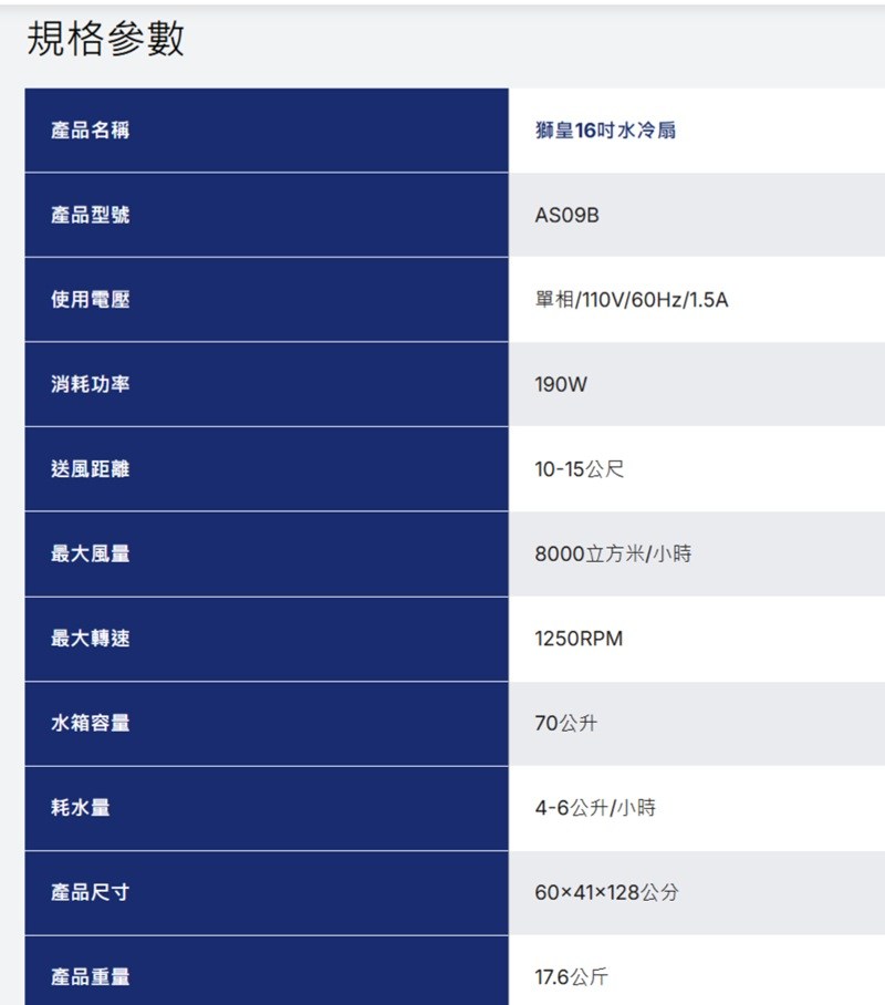 獅皇 16吋 水冷扇 機械式 AS09B