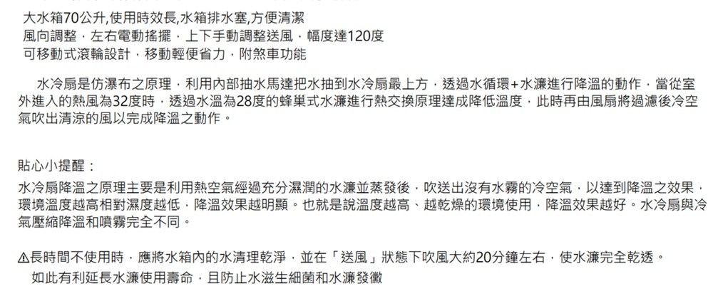 LAPOLO 40L 商用水冷扇 LA-40L180W 全台首創 水泵抽水定時裝置