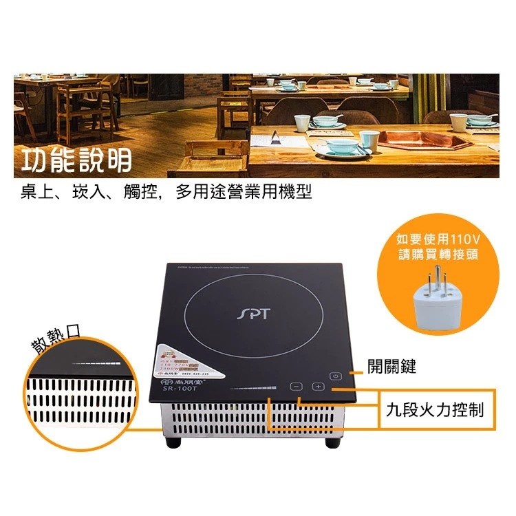 尚朋堂變頻式(110V-220V)營業用電磁爐    SR-100T/SR-100TV1