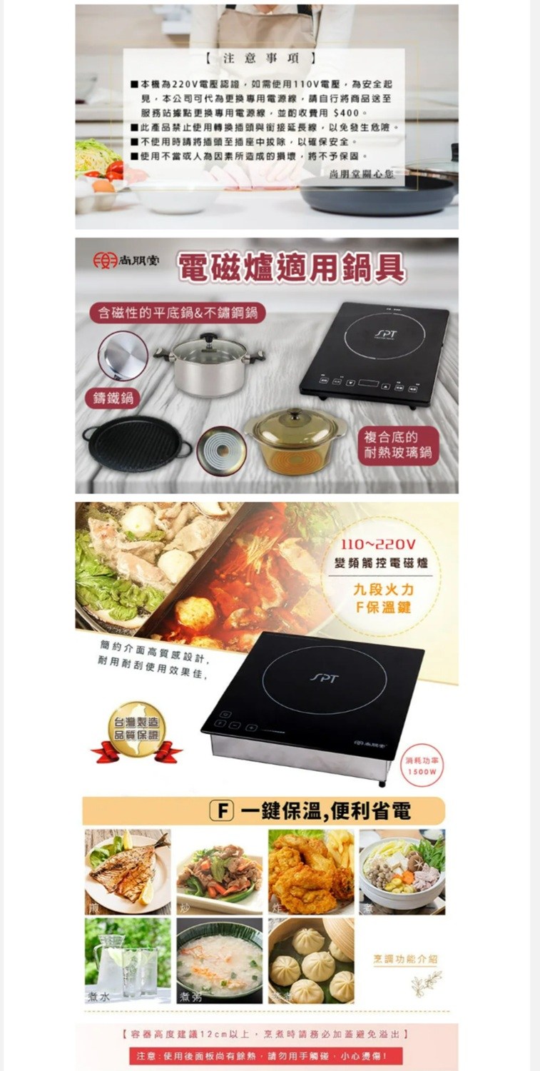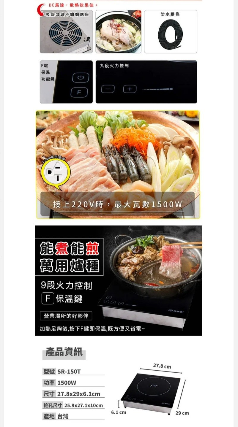 尚朋堂 商業用變頻電磁爐 SR-150T 電壓:220V