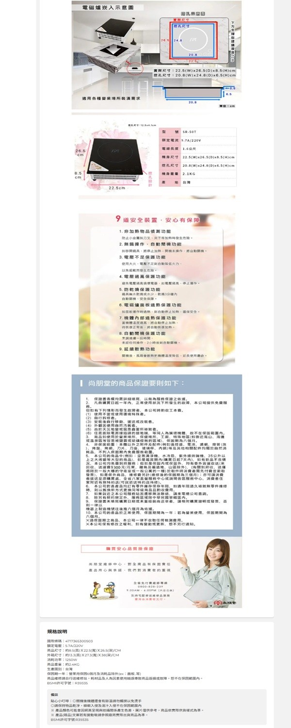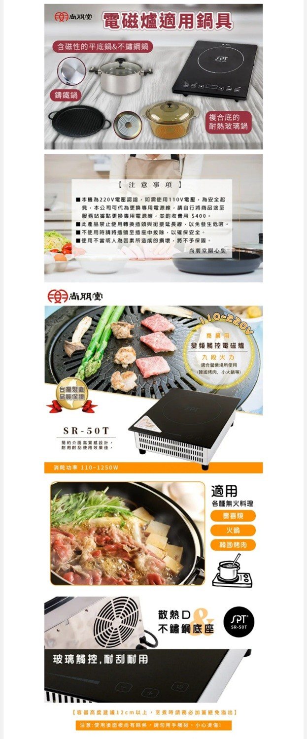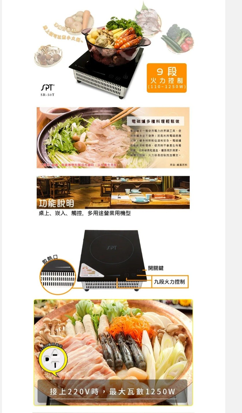 尚朋堂 商業用變頻電磁爐 SR-50T 電壓:220V
