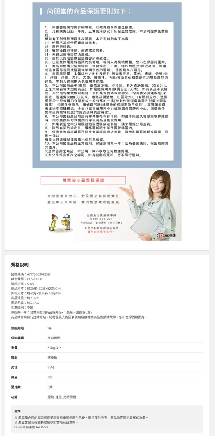 ◤台灣製造◢ 華冠牌 14吋 掛壁扇 / 吊扇 / 涼風扇 / 電扇 BT-1456