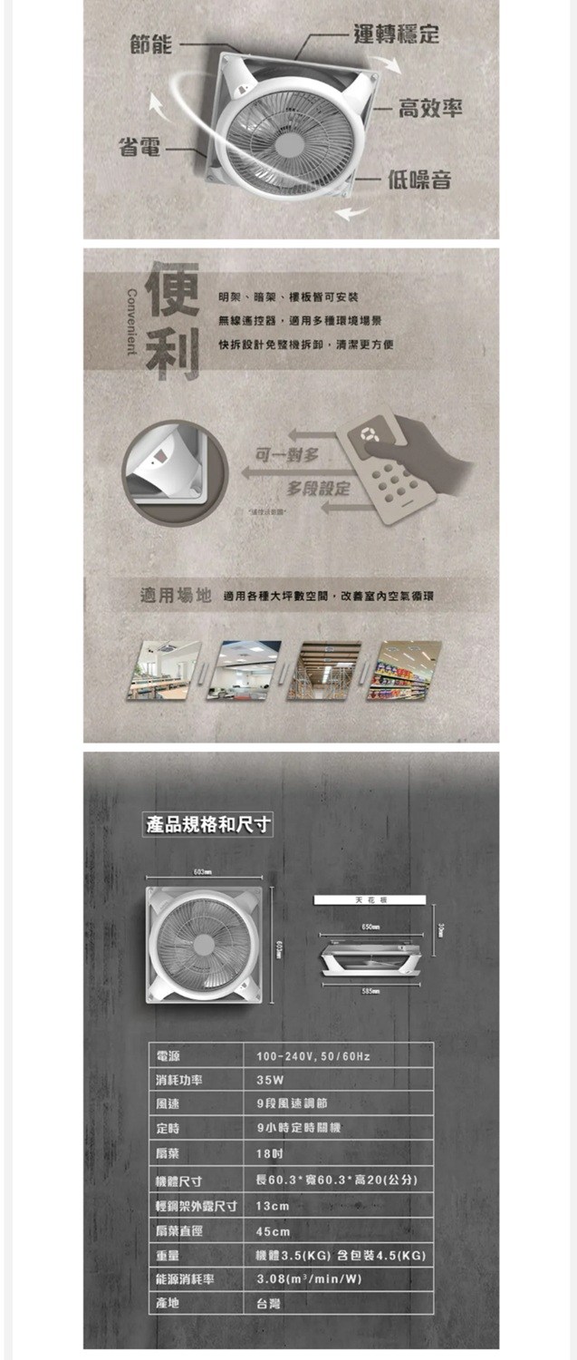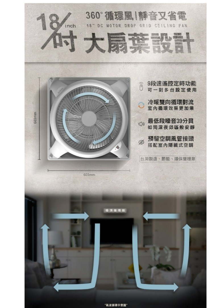 SAMPO 聲寶18吋 9段速微電腦遙控DC直流吸頂循環扇 SK-S24181WL