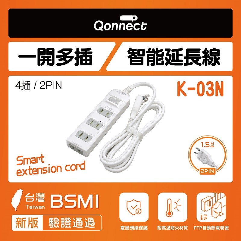 Qonnect 1開4插2P 1.8M延長線 K-03N