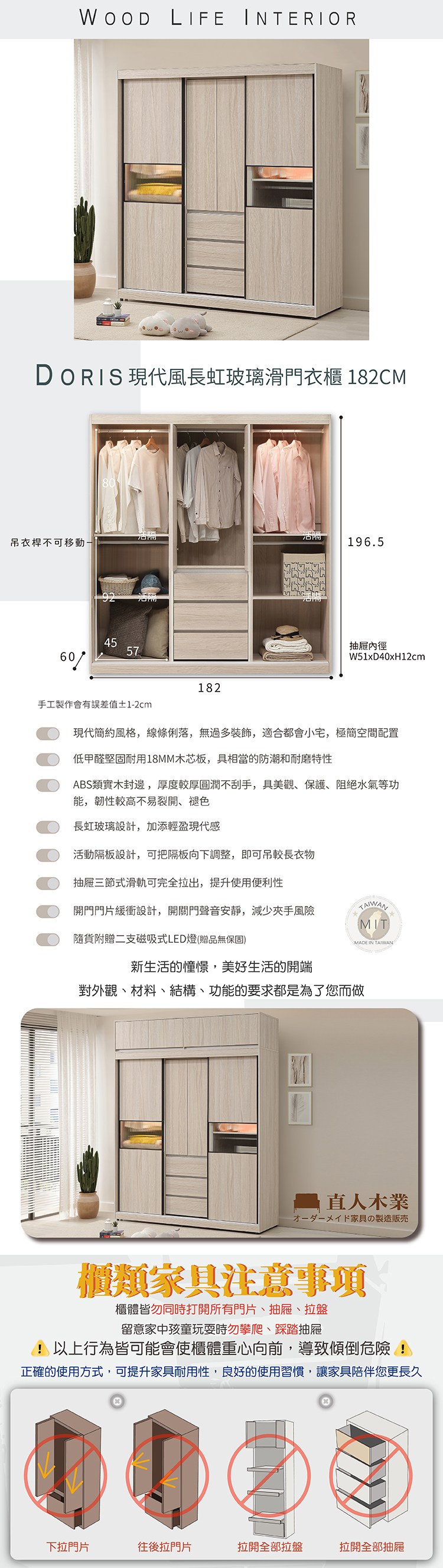 直人木業-DORIS現代風長虹玻璃滑門衣櫃182公分