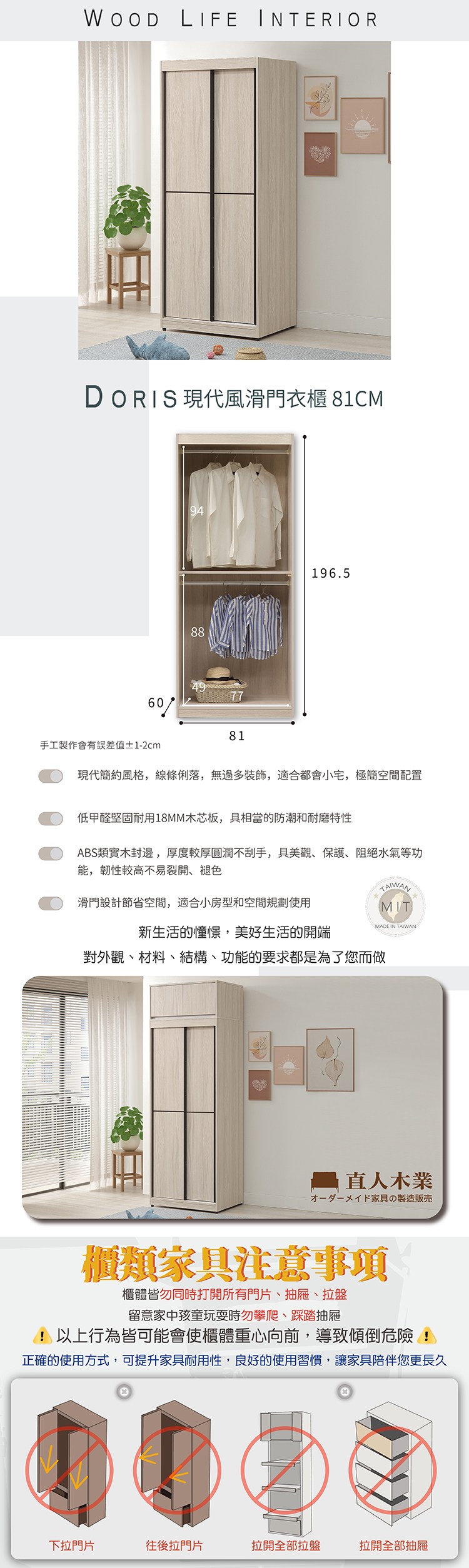 直人木業-DORIS現代風滑門衣櫃81公分