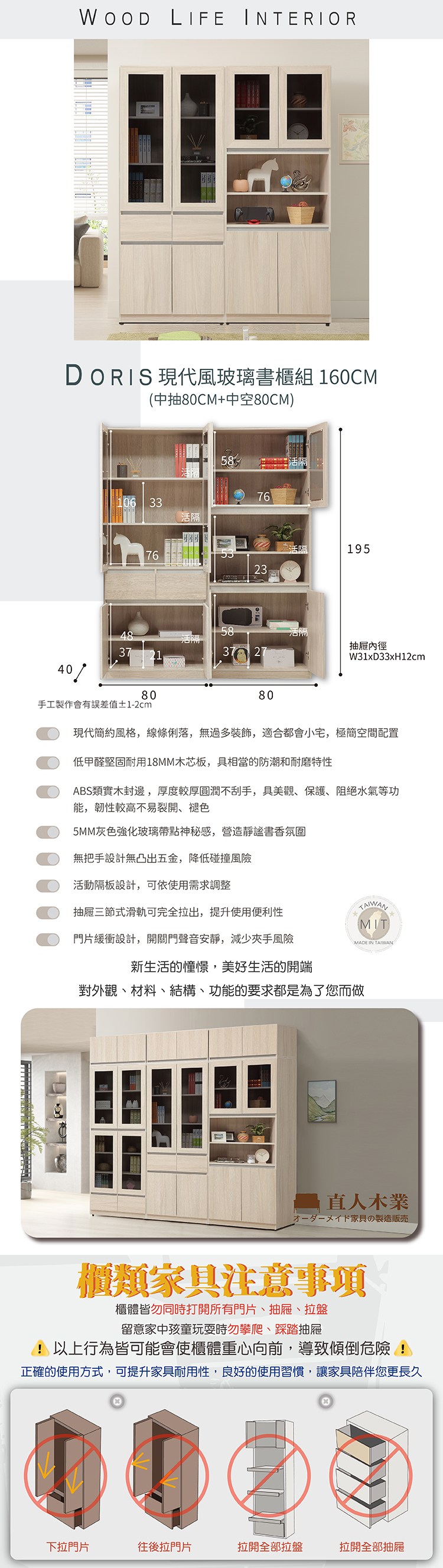 直人木業-DORIS現代風玻璃高被櫥書櫃組160公分(下抽80公分+中空80公分)