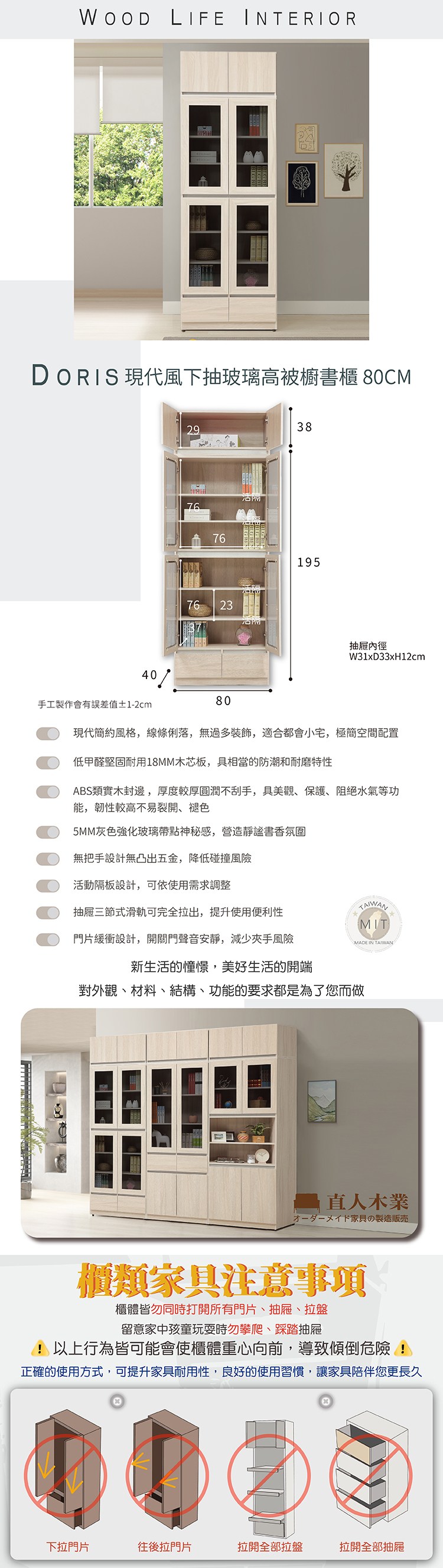 直人木業-DORIS現代風下抽玻璃高被櫥書櫃80公分