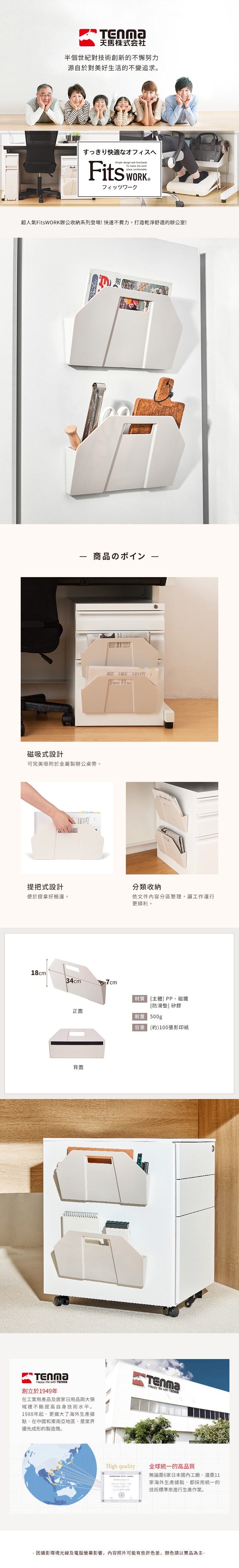 【日本天馬】FitsWORK 磁吸式文件資料收納架