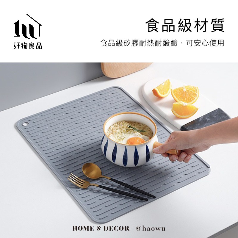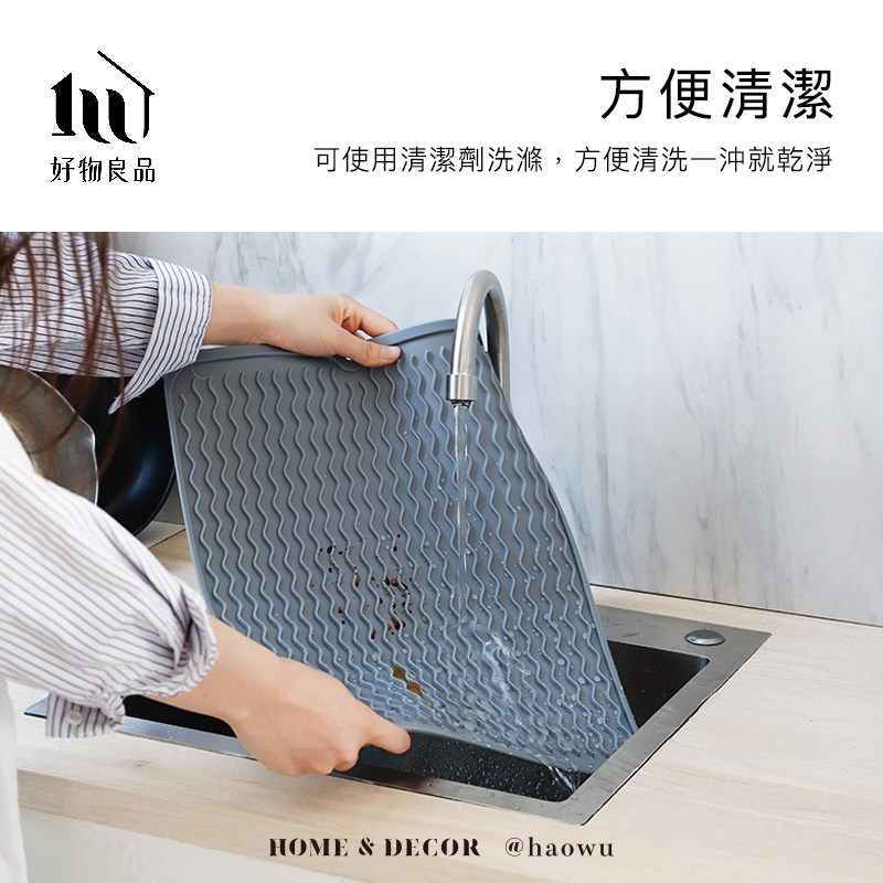 【好物良品】大尺寸矽膠可瀝水多功能餐墊防燙隔熱墊深灰