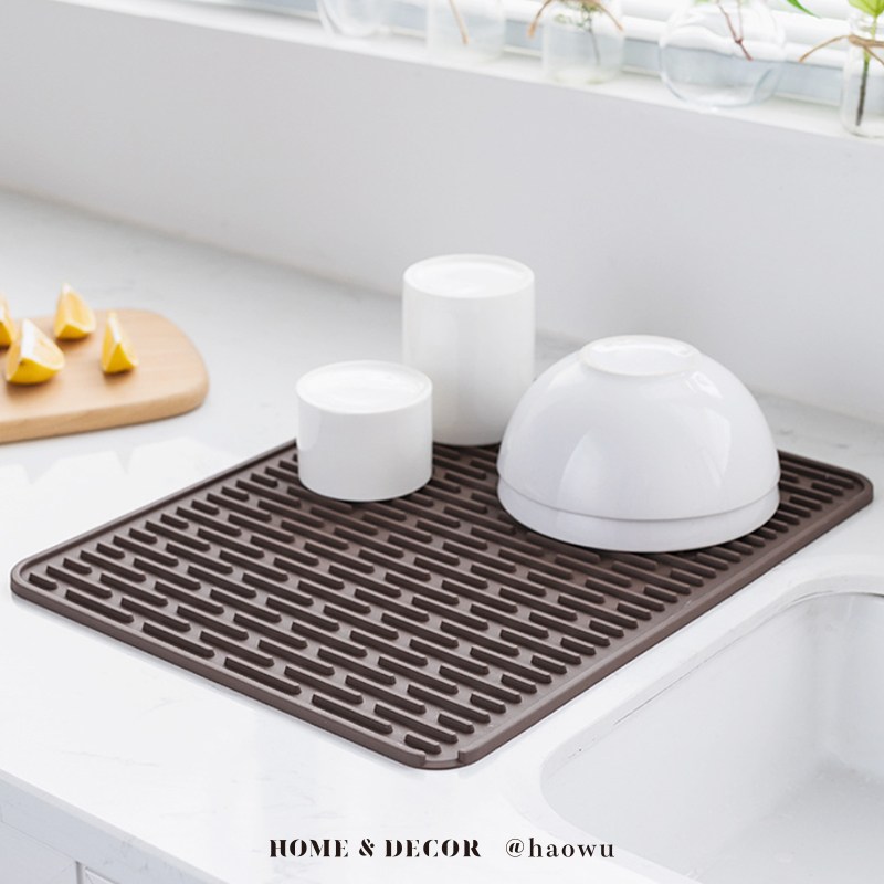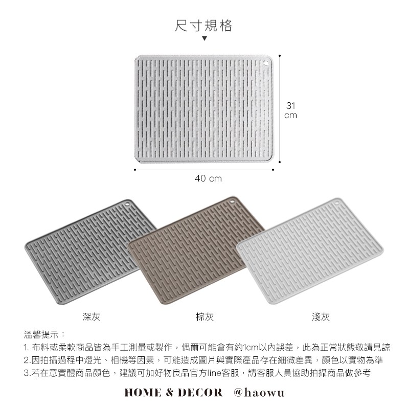 【好物良品】大尺寸矽膠可瀝水多功能餐墊防燙隔熱墊棕灰