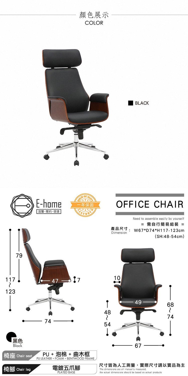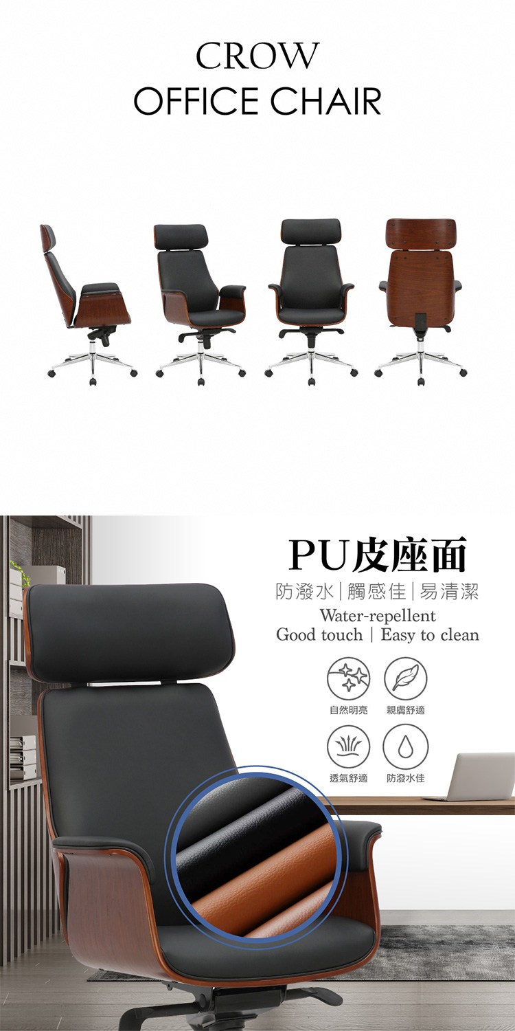 [E-home]Crow克洛PU面扶手曲木高背多功能可調電腦椅,時尚輪廓打造中世紀的現代風格,尊爵品味。