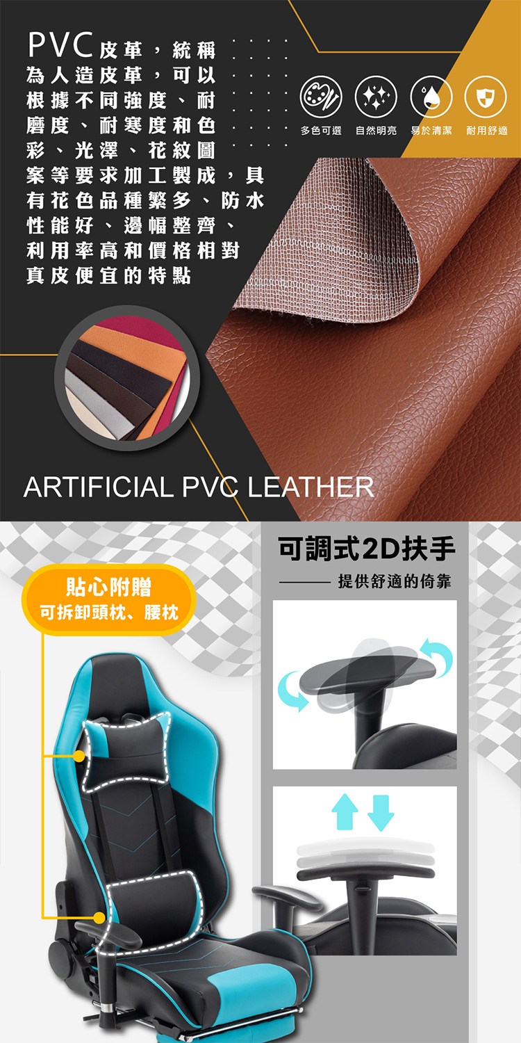 材質:PVC皮+泡棉+尼龍五爪腳+PU滑輪