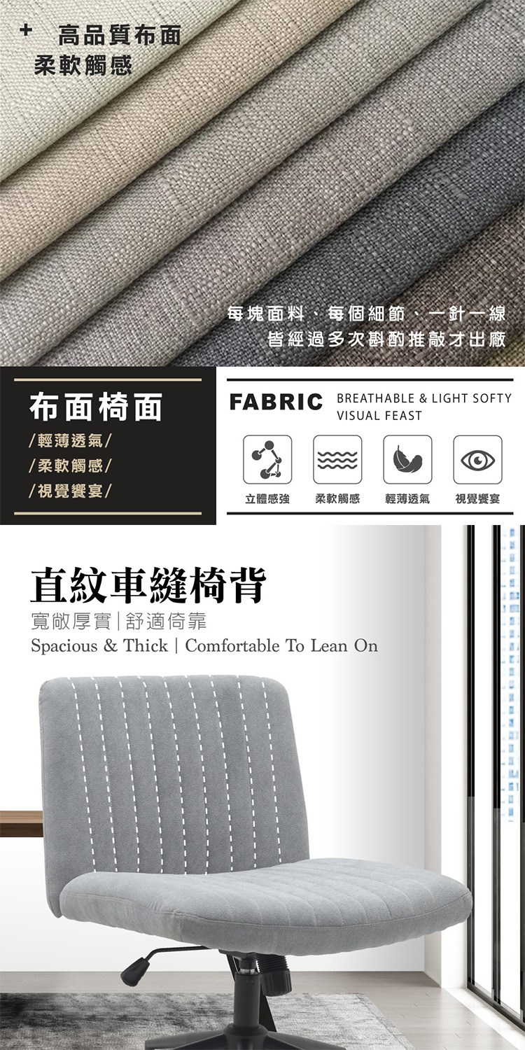 台灣與歐美同步販售、美規設計,柔韌度和透氣性兼具的布面椅座,寬敞厚實直紋車縫椅背舒適倚靠,