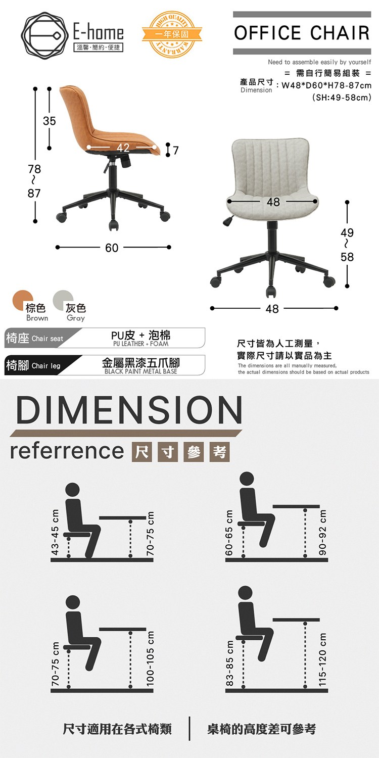 產品尺寸:W48*D60*H78-87 cm (SH:49-58 cm)