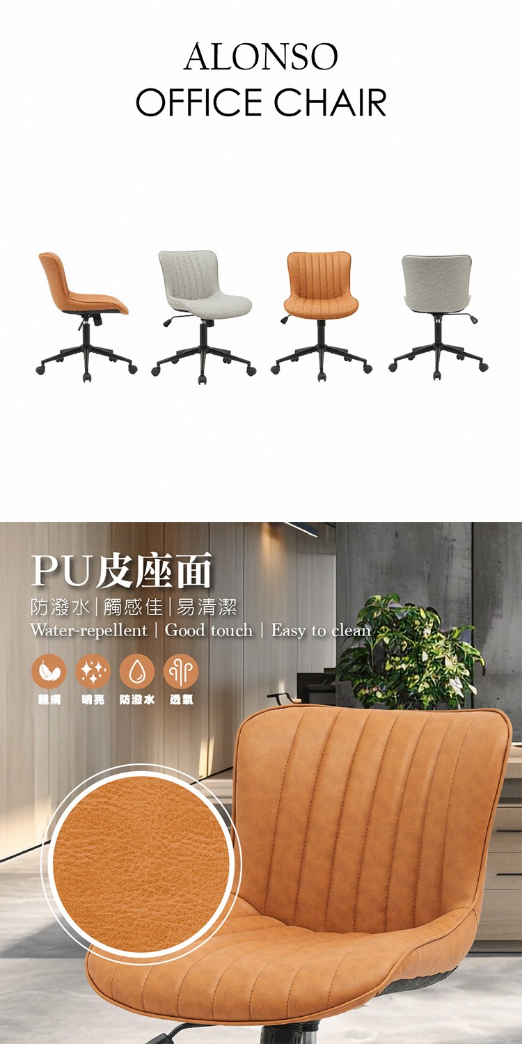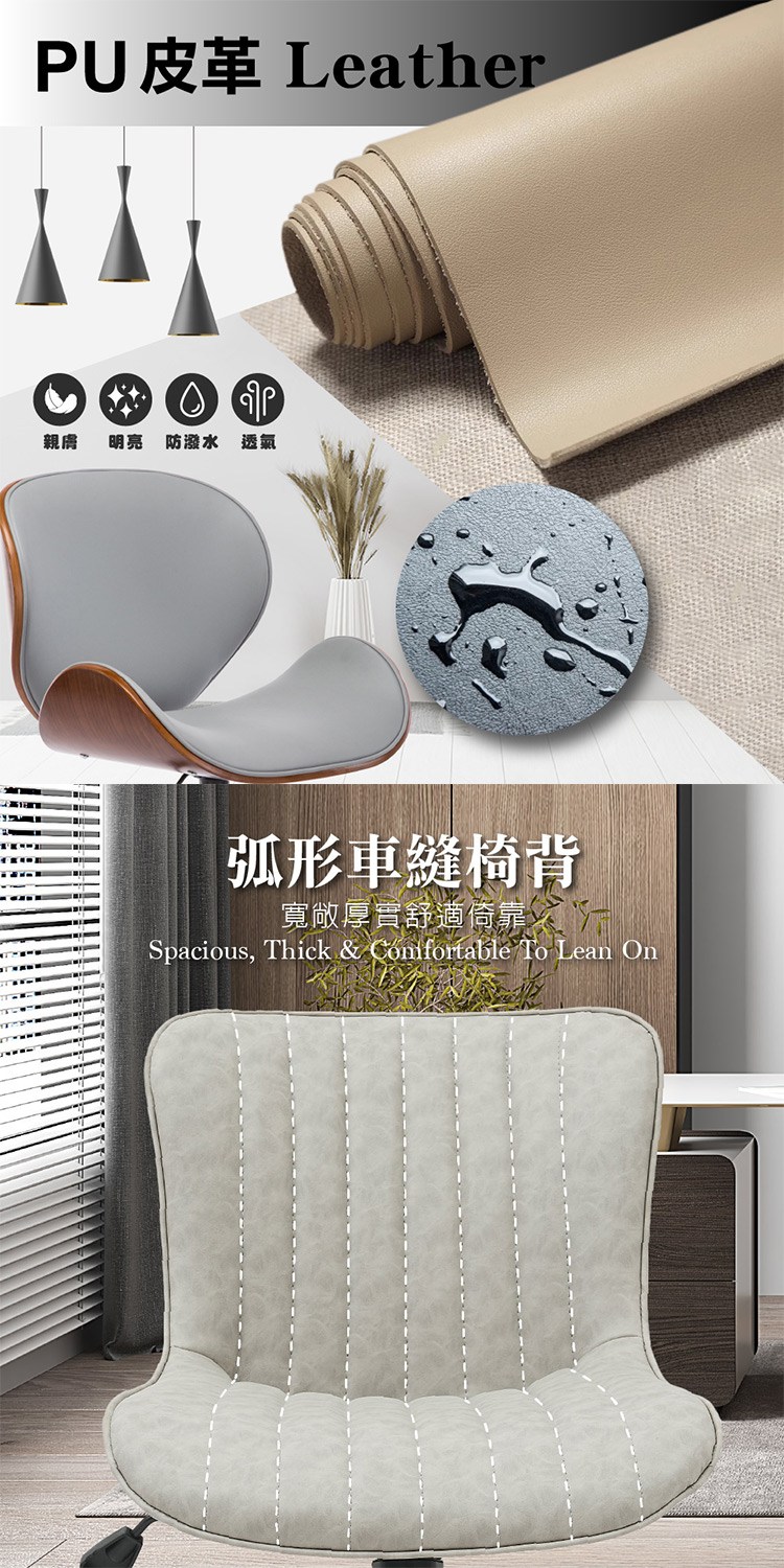 台灣與歐美同步販售、美規設計,防潑水PU皮座面,觸感佳易清潔,寬敞厚實弧形車縫椅背舒適倚靠,