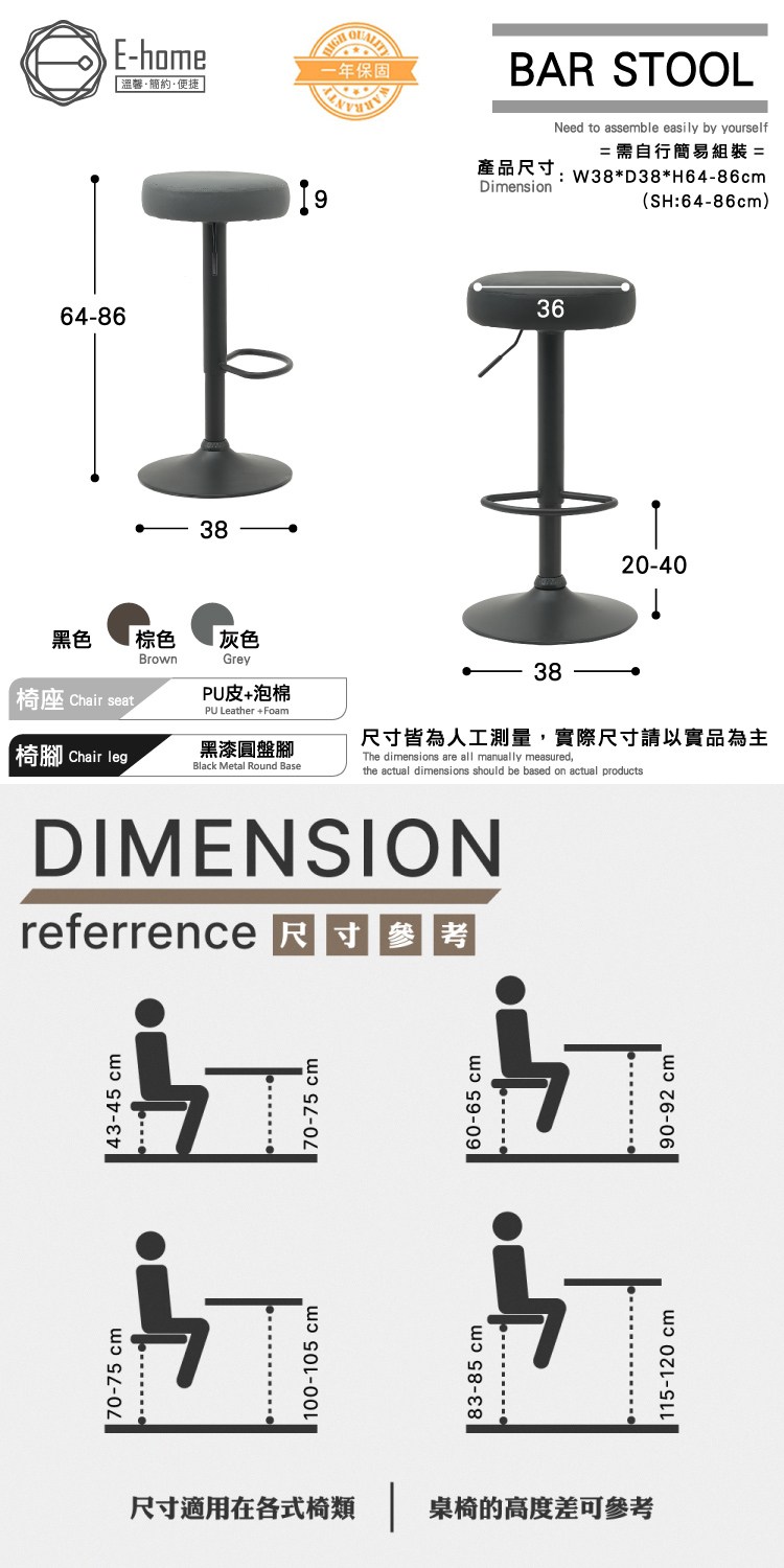 產品尺寸:W36*D38*H64-86 cm (SH:64-86 cm)