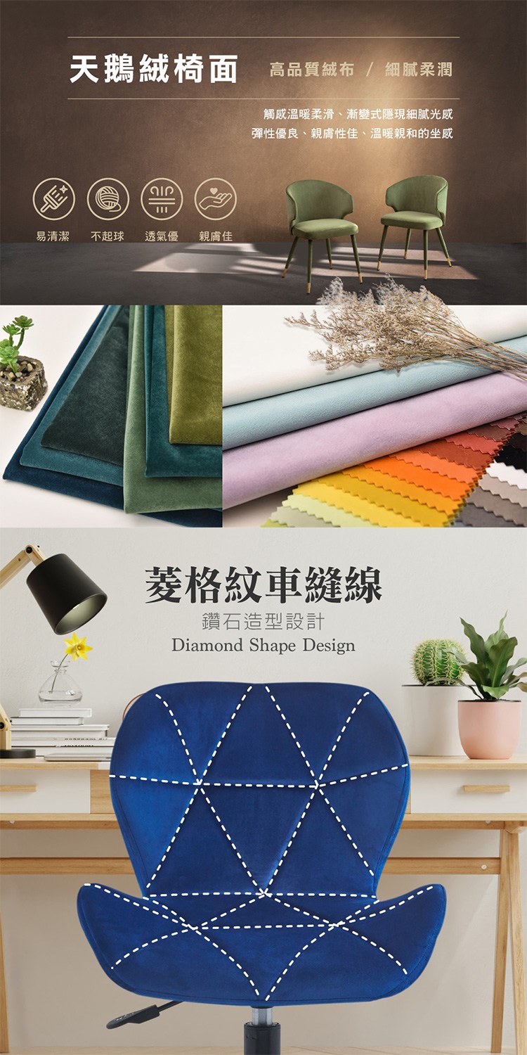 材質:絨布 + 泡棉 + 黑漆金屬五爪腳 + PU滑輪