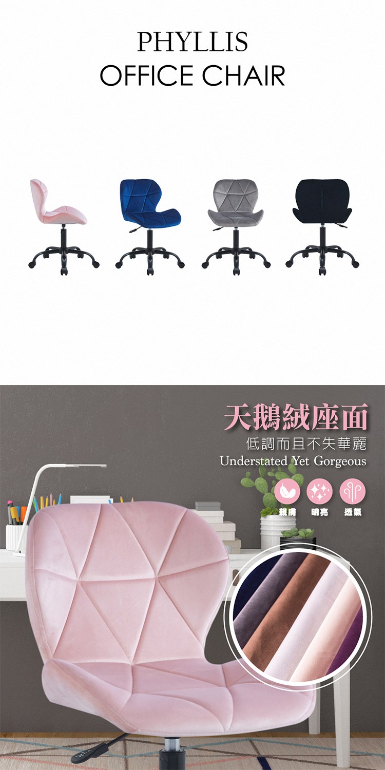 [E-home]Phyllis菲莉絲造型絨布軟墊黑腳電腦椅,現代時尚設計風格展現您的個性,讓空間瞬間耀眼起來。