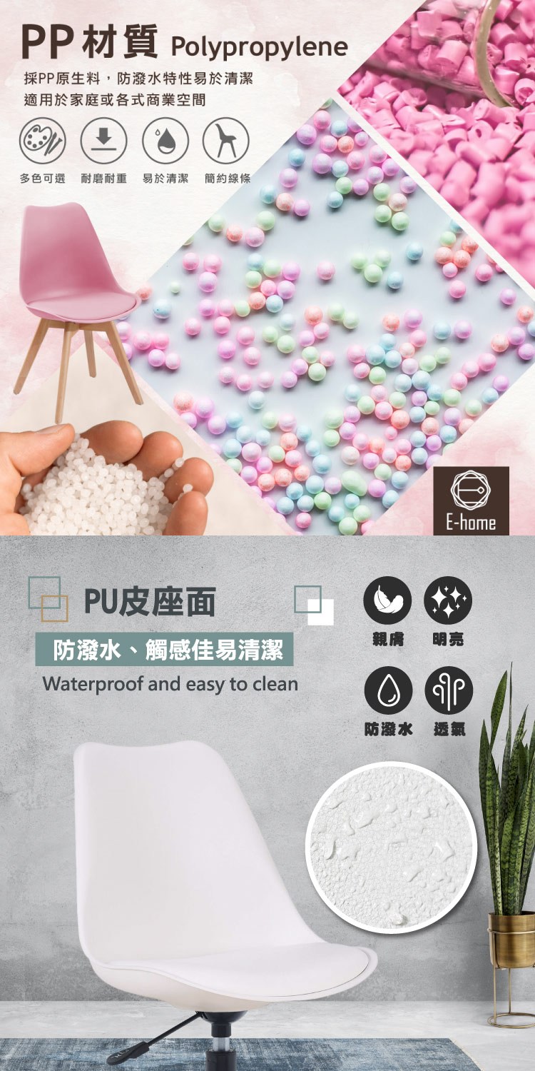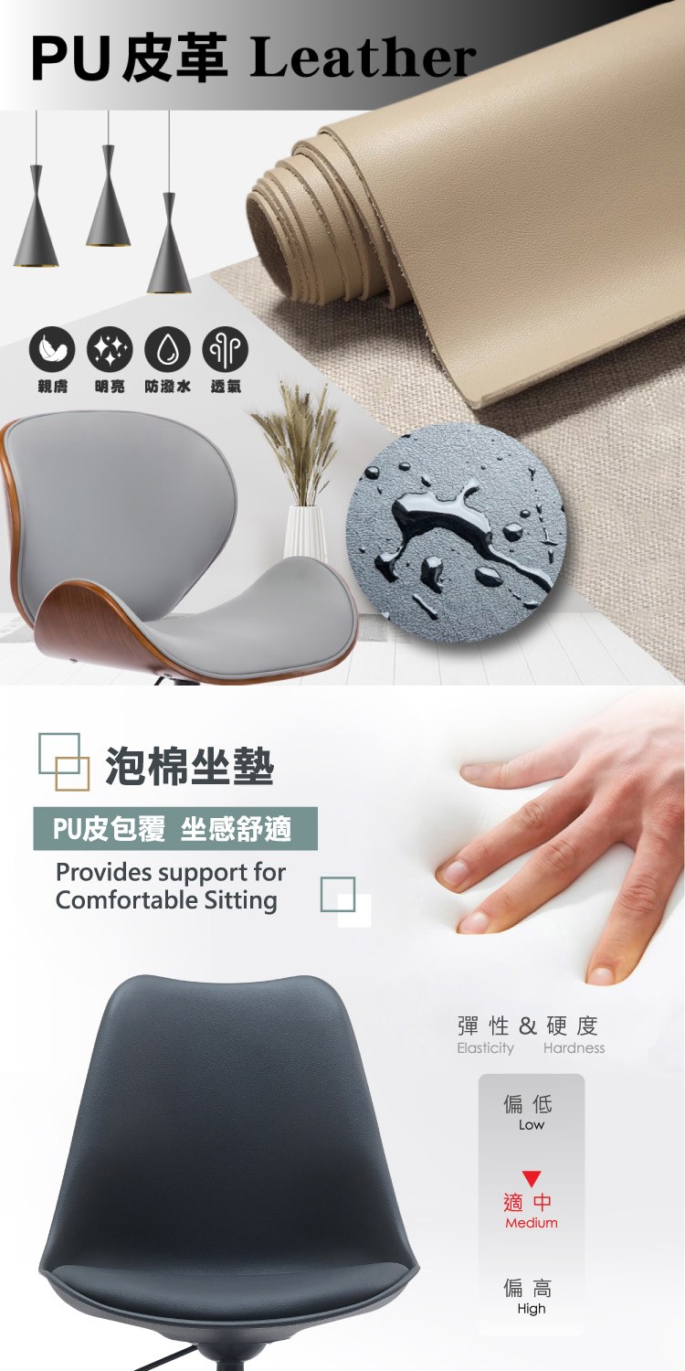 * 防潑水PU皮座面,觸感佳易清潔