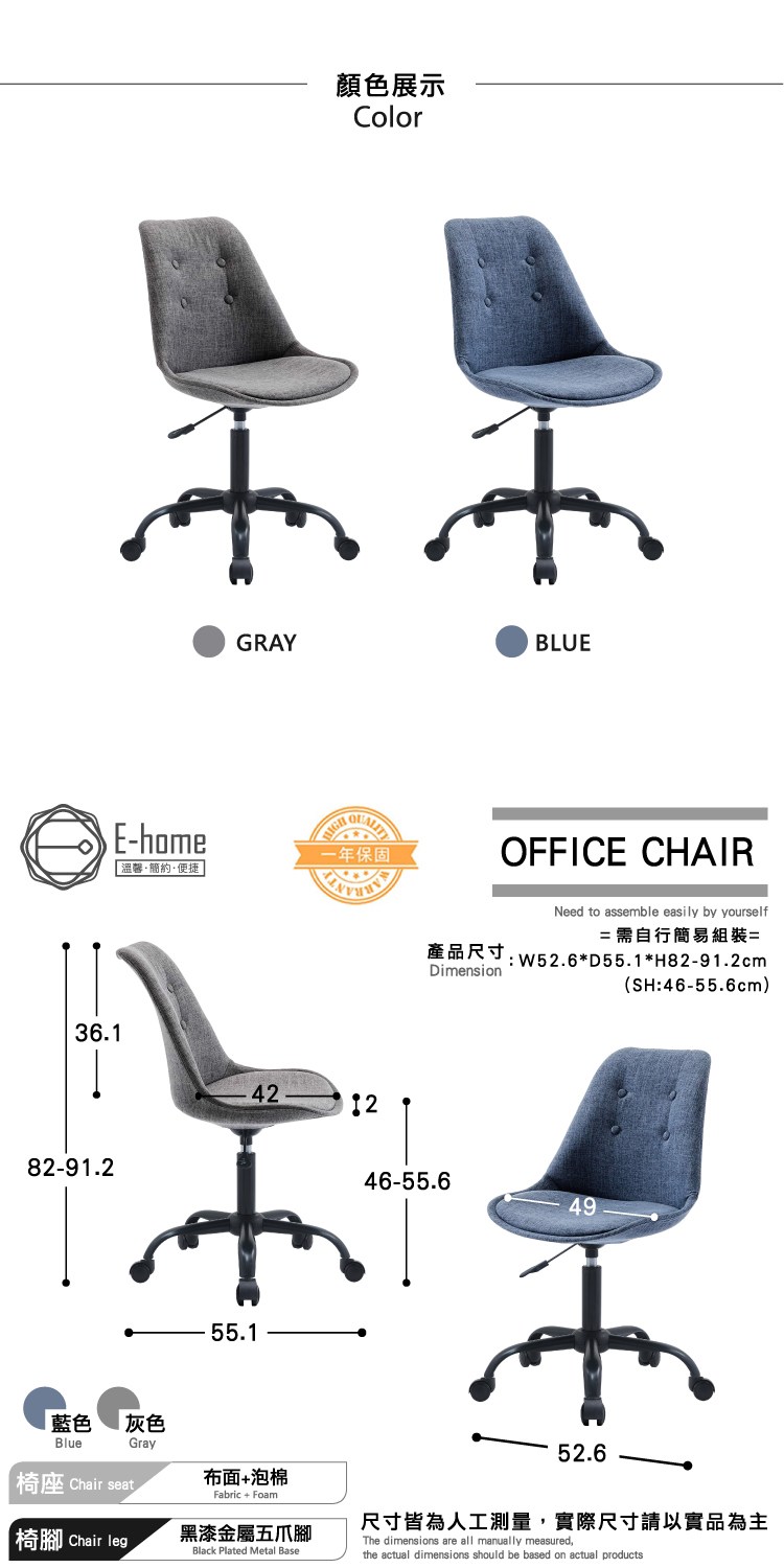 E-home Avery艾佛里可調式布面拉扣黑腳電腦椅-兩色可選