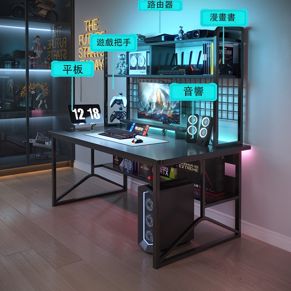 APP下單享點數9% 電競桌椅組合工作臺書桌書架一體家用學生學習寫字桌臺式電腦桌子