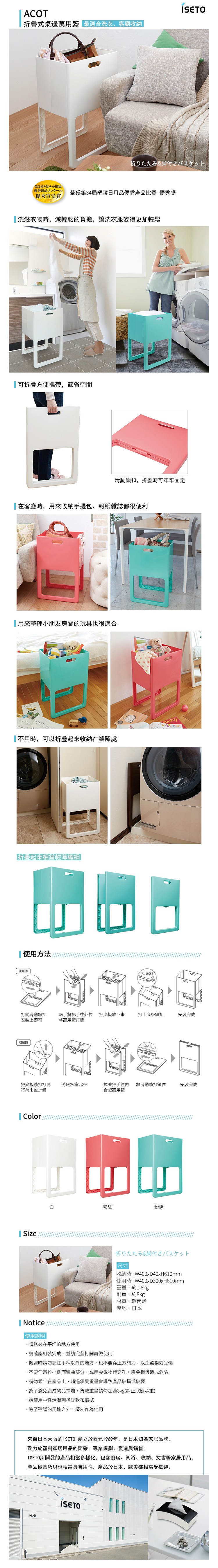 【日本ISETO】日製ACOT折疊式桌邊萬用籃-白