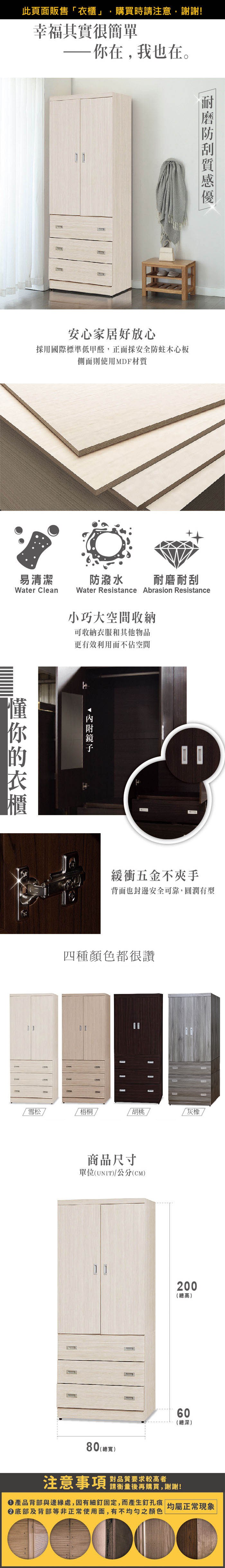 AS雅司-DoubleHappy3×6尺下二抽衣櫥-81.2*58.2*180cm