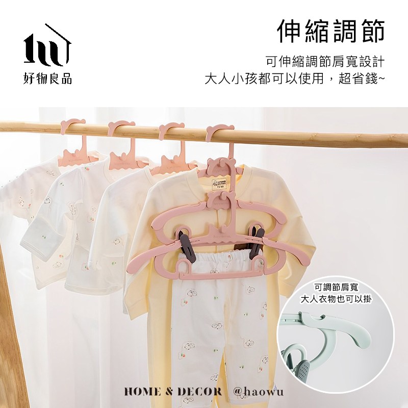 【好物良品】10入_兒童成長型疊掛伸縮安全衣架10入組