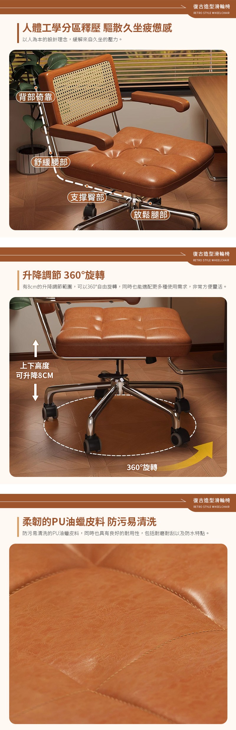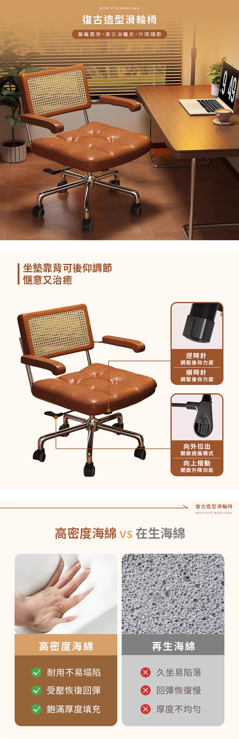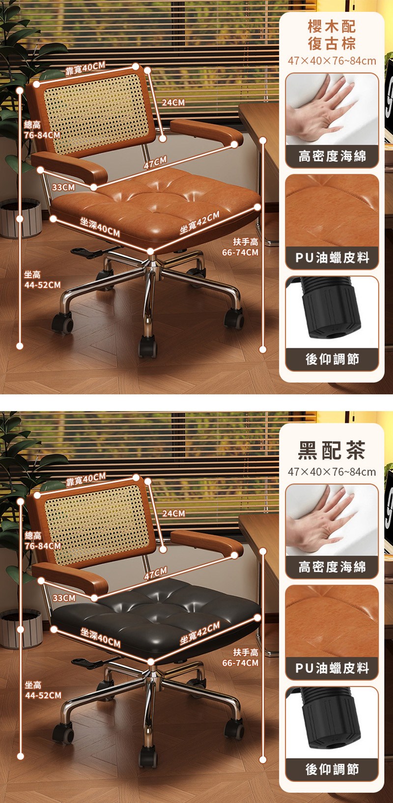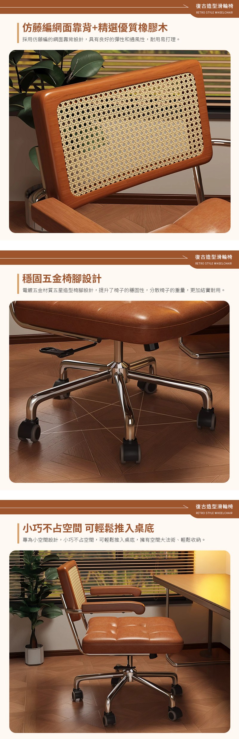 【HappyLife】復古風仿藤編滑輪椅 電腦椅 Y12252黑配茶