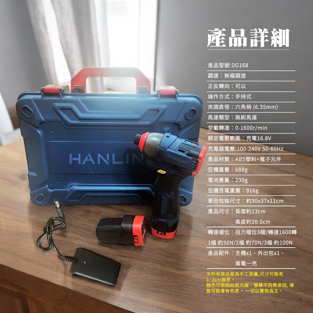 HANLIN-DG168 強扭力100N 迷你小鋼砲快速頭電動螺絲起子 18V鋰電鑽 無線電鑽 起子機 螺絲刀 兩電一充 收納盒