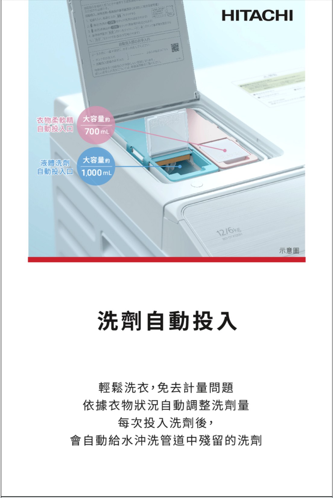 HITACHI 日立 12KG BD-SX120HJ-W 日製AI智能感測變頻左開滾筒洗脫烘洗衣機