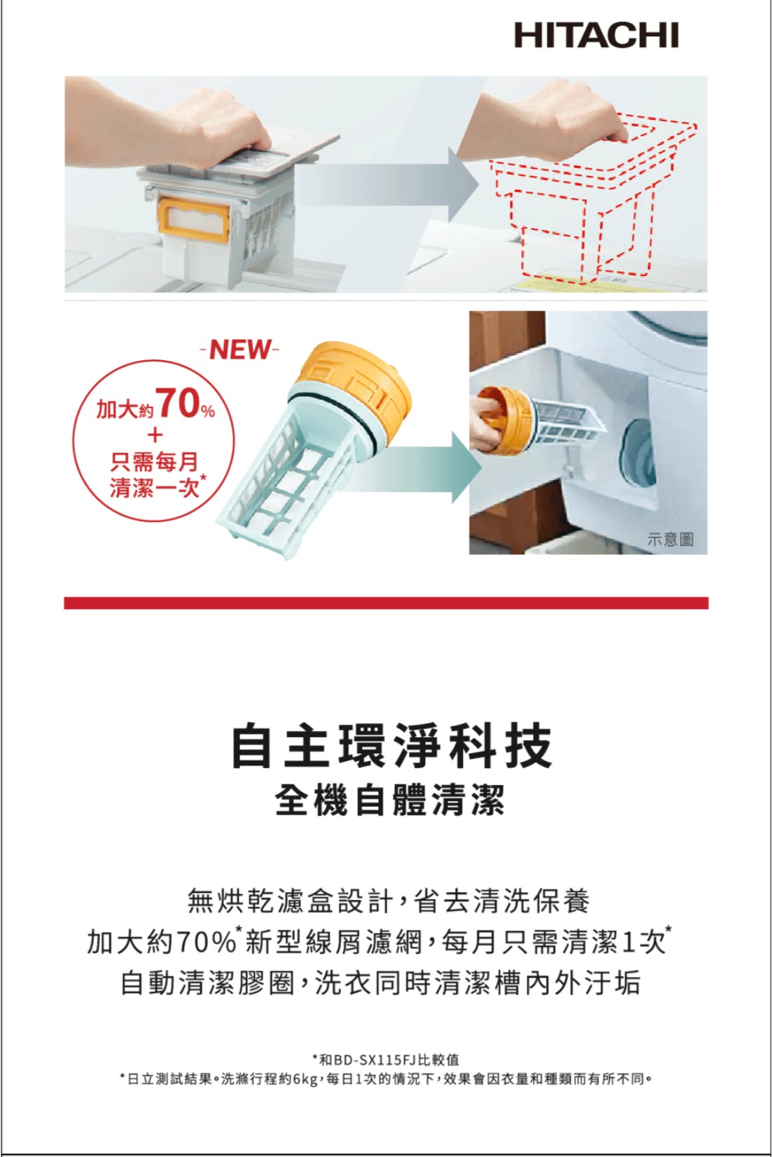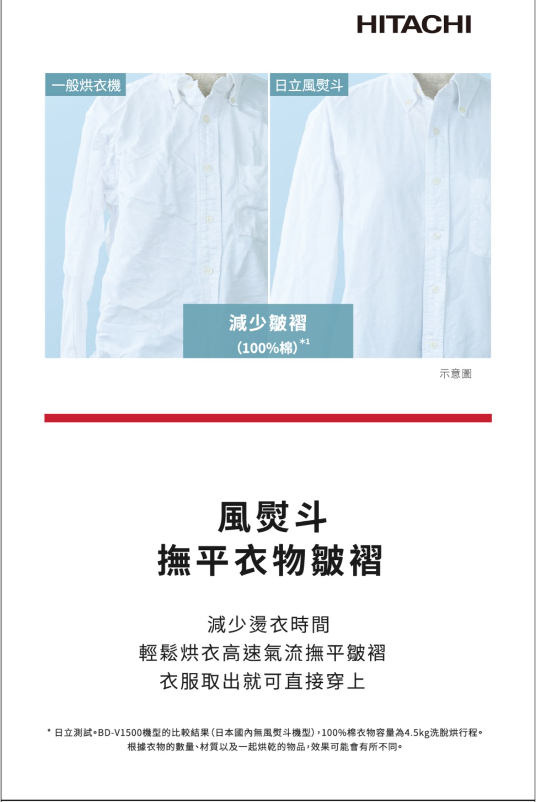 【HITACHI 日立】BDSX150JJ-W 15公斤 日本原裝IOT智能自動投洗滾筒式洗脫烘 (含基本安裝)
