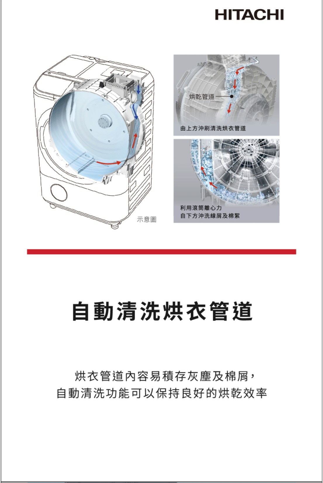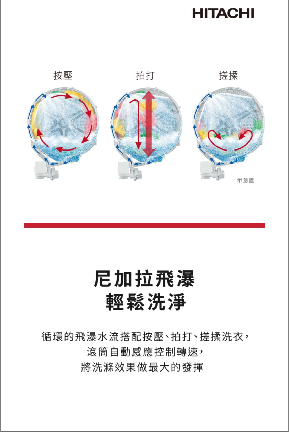 登錄送+加碼送【HITACHI日立】12KG變頻右開滾筒洗脫烘洗衣機BD-SX120HJR-W