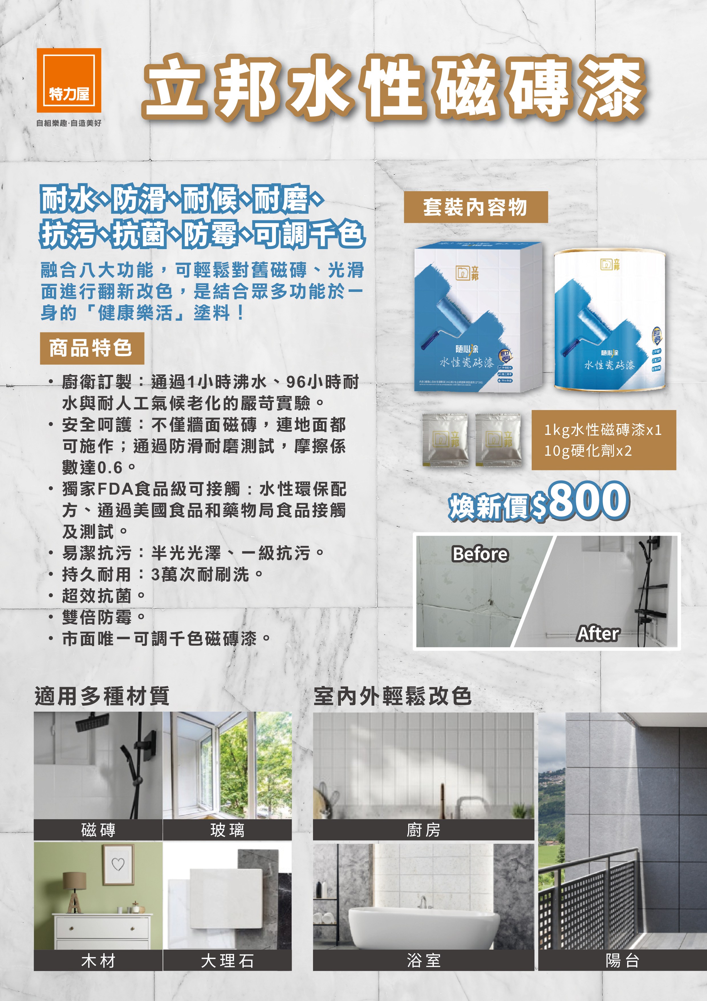 1. 清理表面灰塵、雜質等髒污,確保底才清潔與乾燥,使用砂紙對磁磚底才進行打磨處理,提升附著力(大理石、玻璃表面禁止打磨)