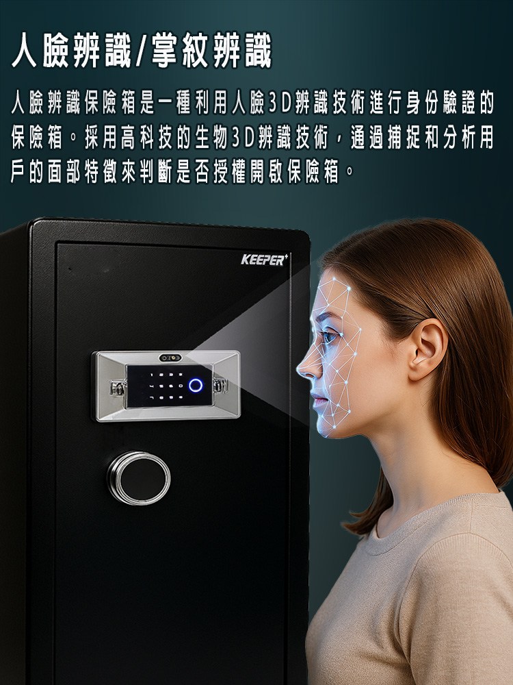 人臉與掌紋辨識保險箱是新一代結合 AI 智慧科技的安全設備,透過臉部與手掌的生物特徵雙重驗證,提供更高等級的防護。只需站在保險櫃前,自動掃描人臉或掌紋,即可快速解鎖,無需攜帶鑰匙或記憶密碼。像 100FIN-FP 這類保險箱,同時支援 人臉辨識、掌紋辨識、指紋辨識 與 密碼開啟,操作簡單又安全,特別適合家庭、辦公室或重要資料 金庫 使用,是現代防盜保護的理想選擇。