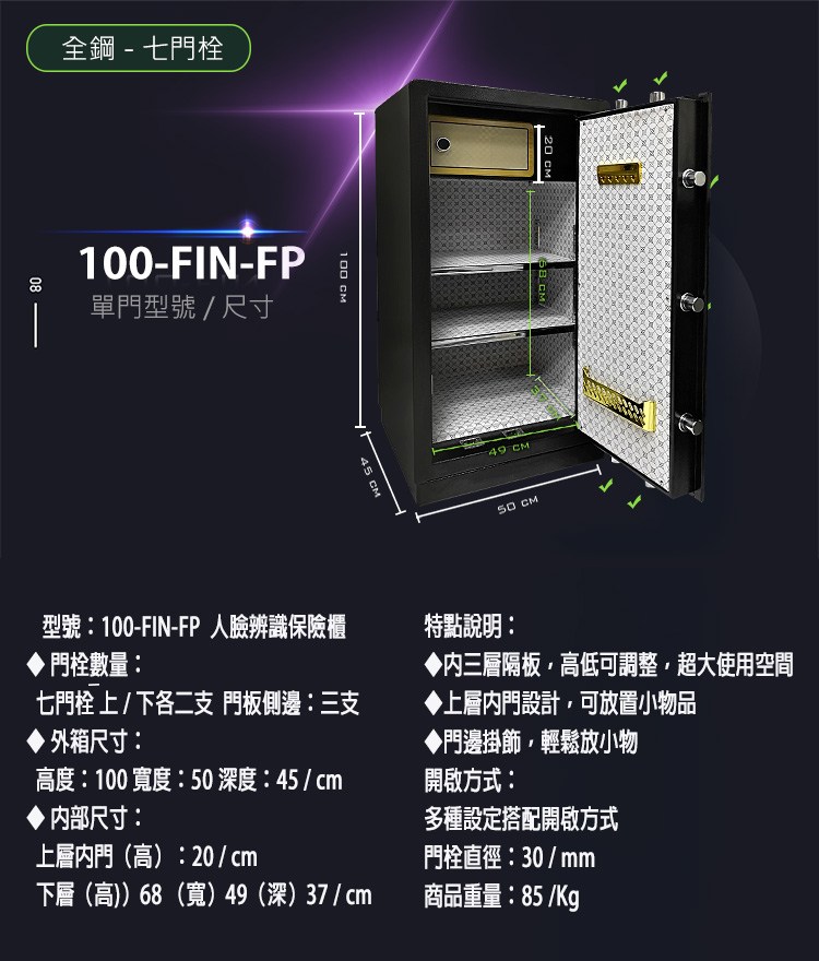 100FIN-FP人臉掌紋指紋密碼保險箱推薦|家用多重開鎖保險櫃