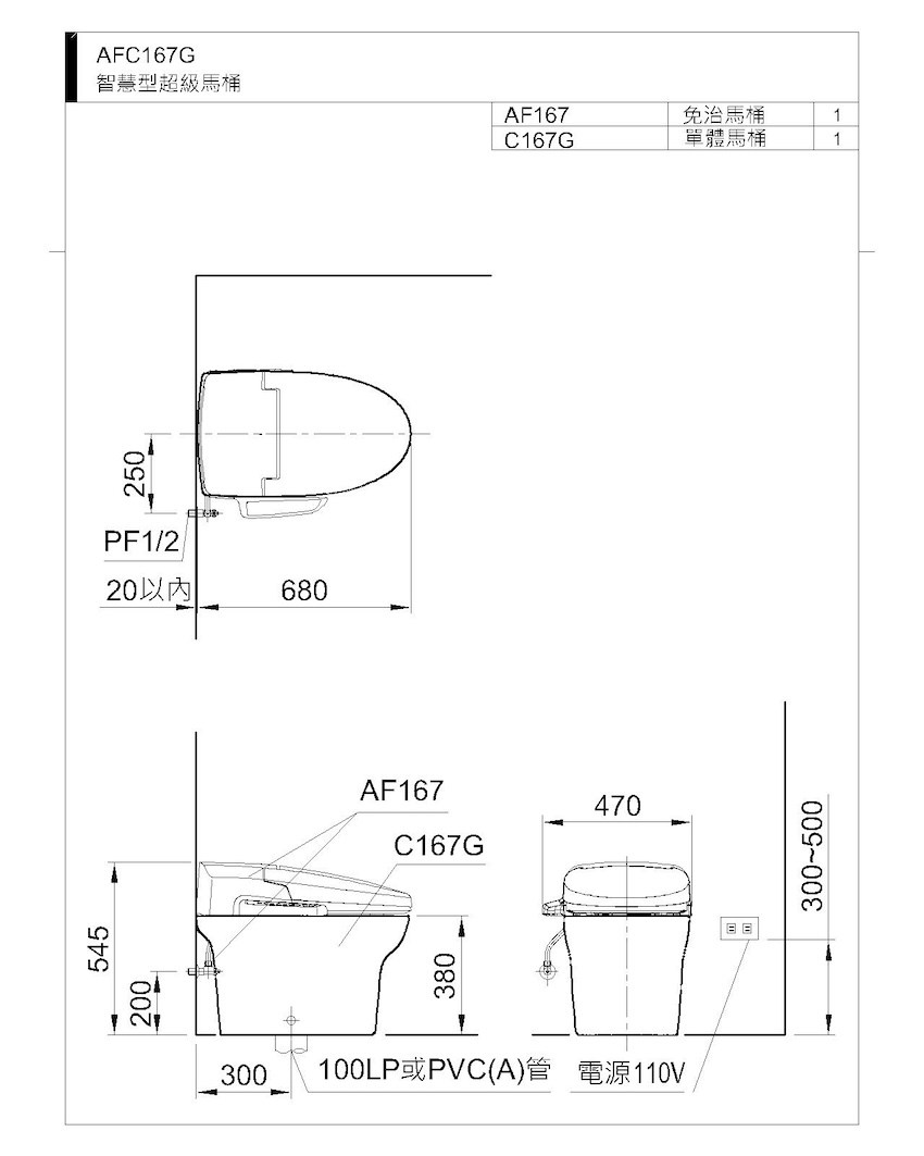 和成 智慧型超級馬桶 AFC167 管距30公分