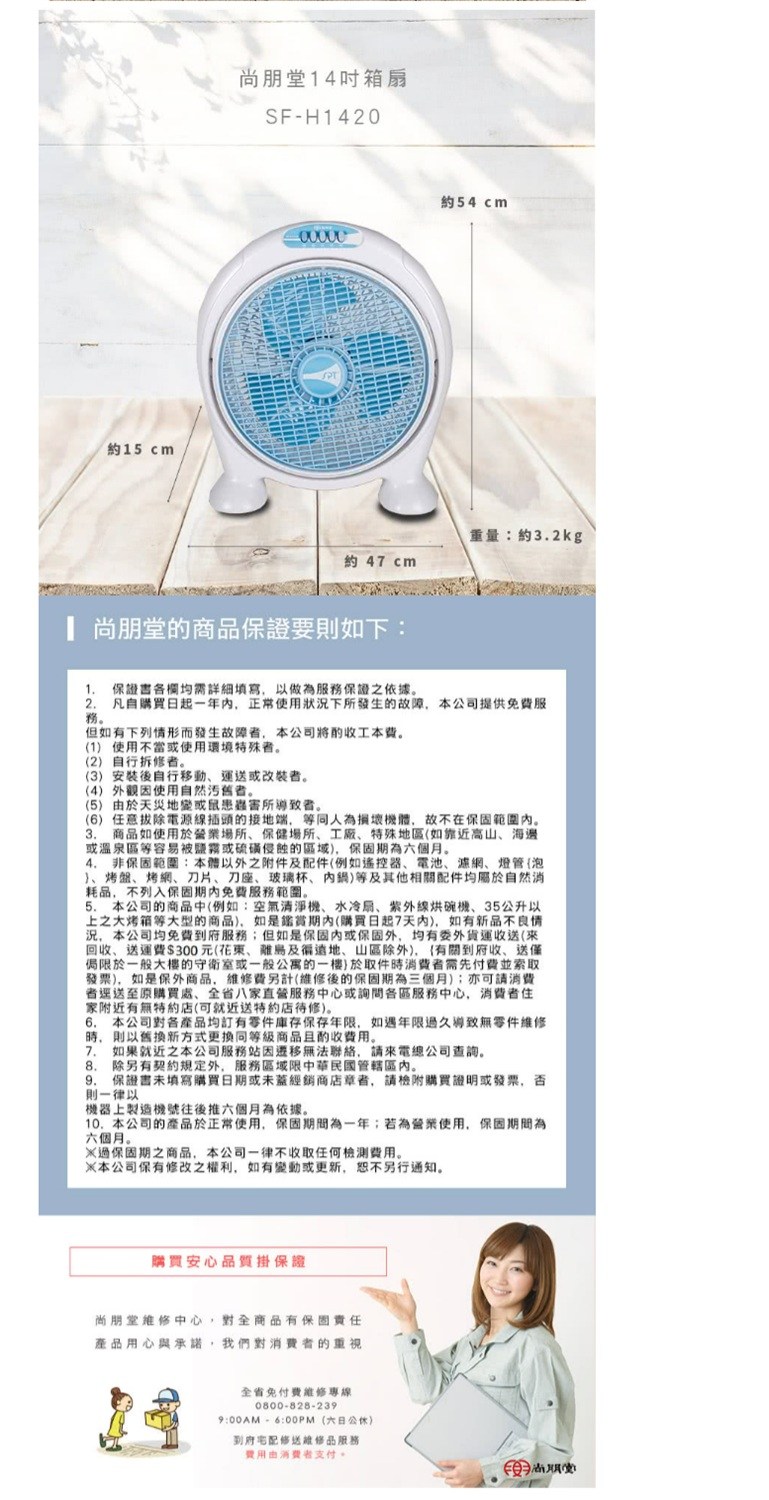 尚朋堂 14吋箱扇 SF-H1420 (白藍色)