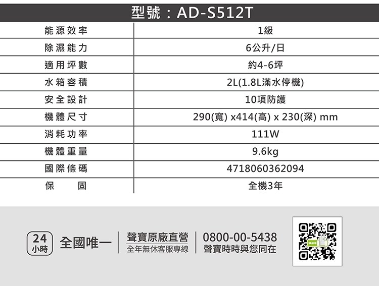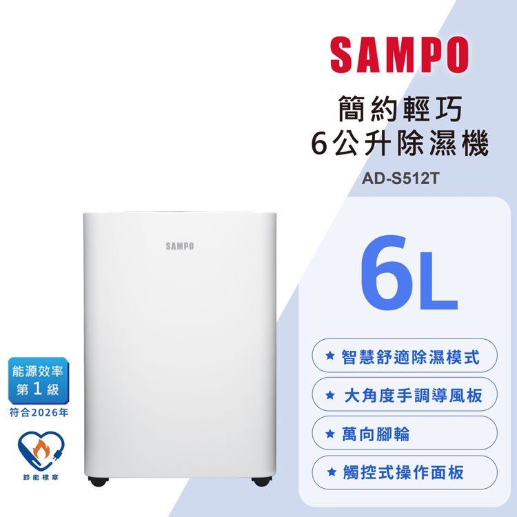 SAMPO聲寶 6L簡約輕巧除濕機 AD-S512T