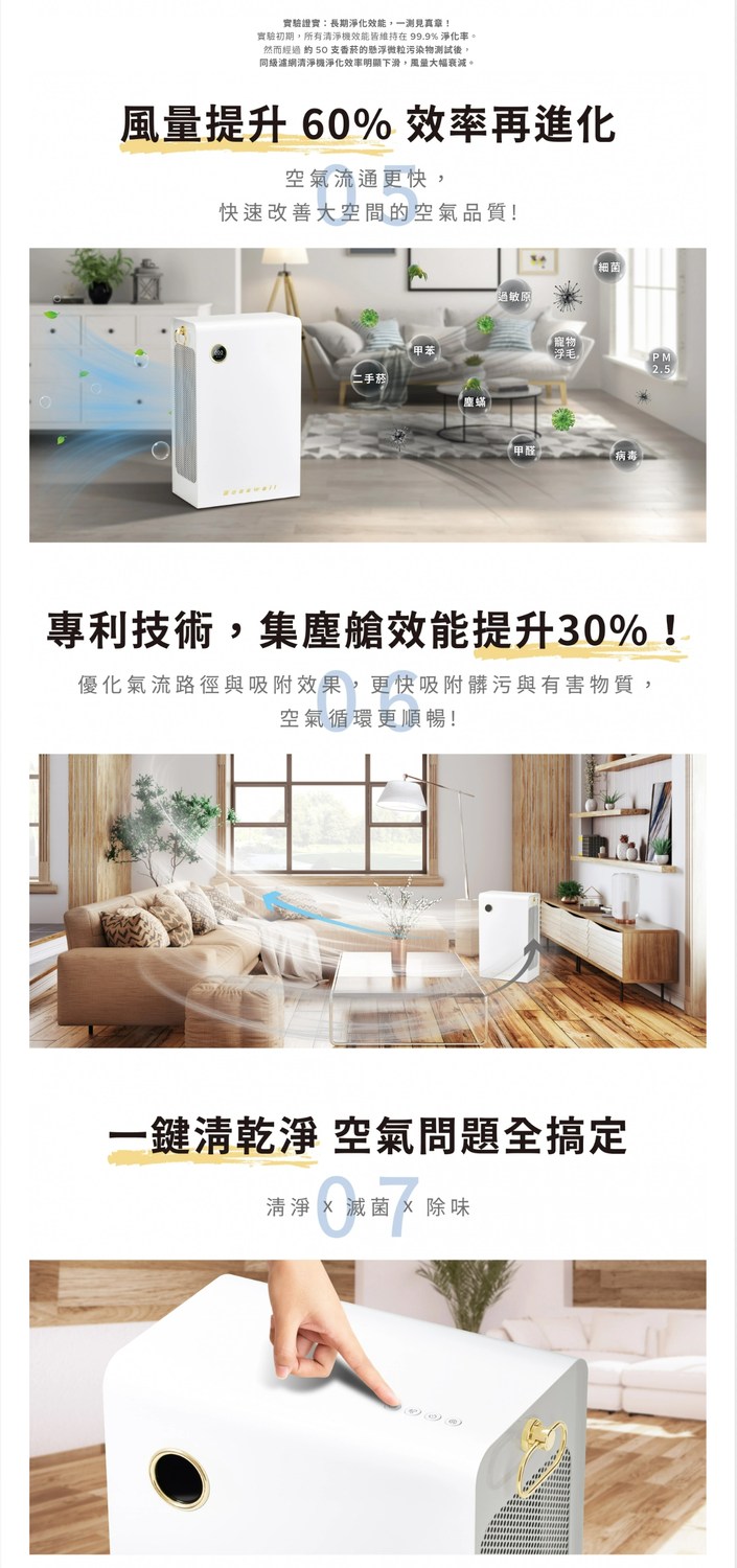 PINOH品諾 超級大王同款 高效淨化空氣清淨機 DA-A1003RW 適用34坪 1台